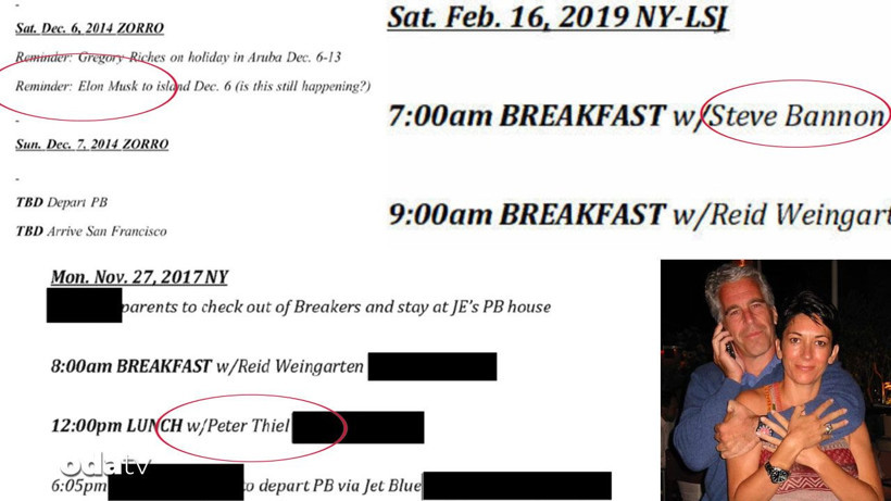 27 Kasım 2017 tarihli kayıtta “Peter Thiel ile öğle yemeği”, 16 Şubat 2019’da ise “Steve Bannon ile kahvaltı” planı bulunuyor.
